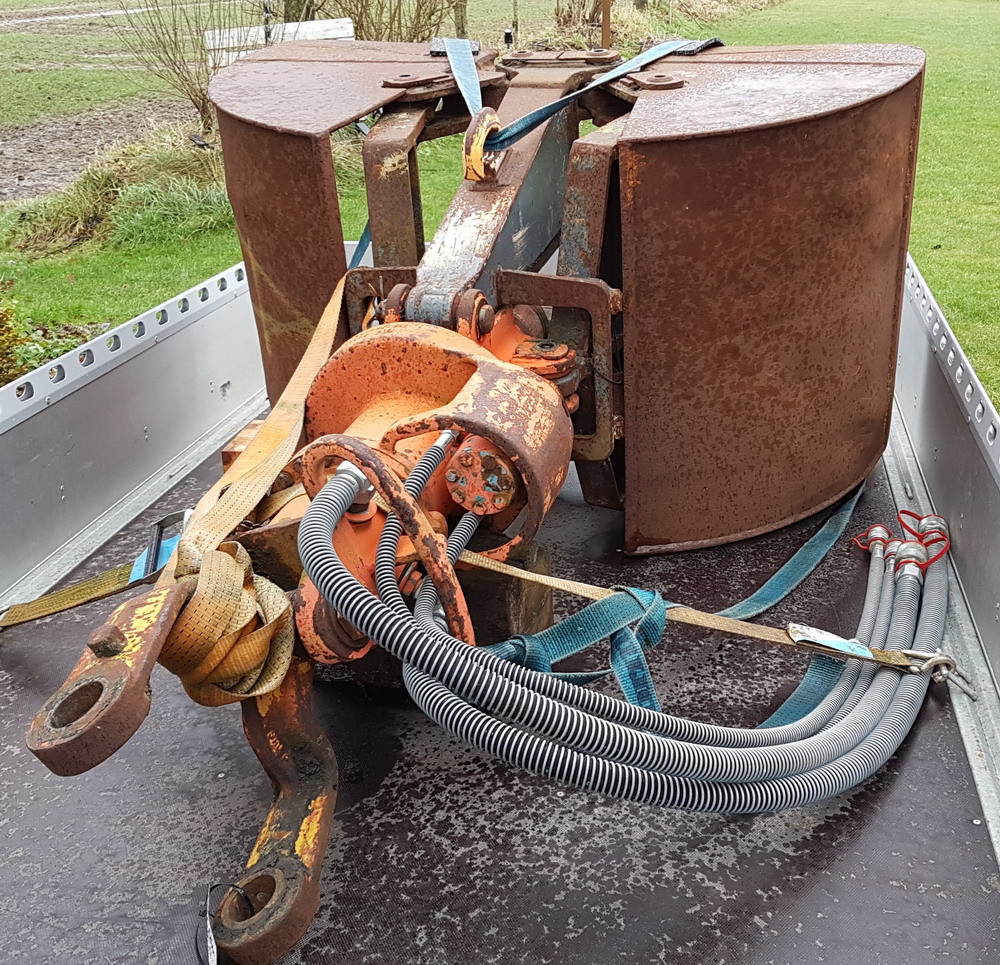 Alle Gebrauchtgeräte sind beim Eingang von Fachleuten begutachtet worden, so dass mir seitens des zuständigen Mitarbeiters (Florian Holsten) telefonisch für jeden von mir ins Auge gefassten Greifer ausführlich Auskunft erteilt wurde über jede Leckage, jeden Riss, jedes verbogene Teil, ja über jede Macke, die festgestellt wurde. So konnten wir den Kauf am Telefon abwickeln, ohne dass ich den Weg nach Lauenbrück machen musste, um die Greifer in Augenschein zu nehmen. Ich suchte mir also einen 80er Greifer aus, bekam eine Rechnung, bezahlte die