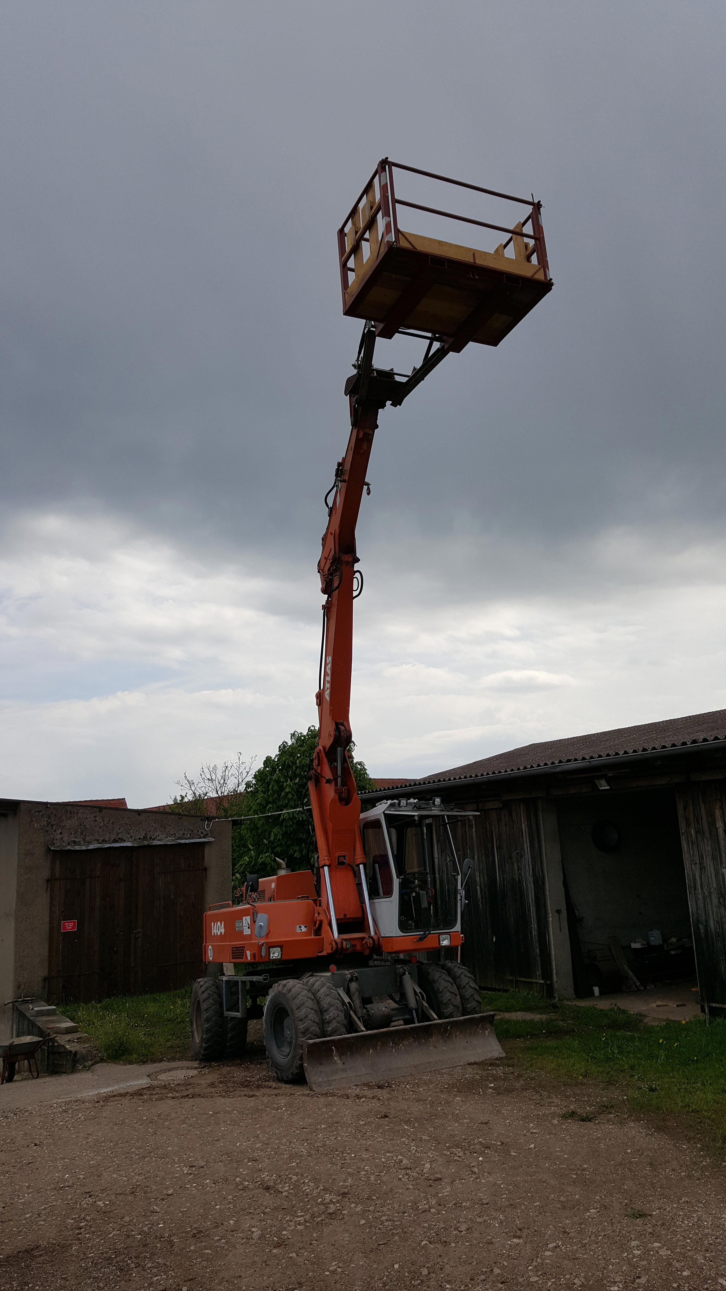 Auf den Bilder ist mein selbst gebauter Multifunktionskorb zu sehen, mit dem z.B. Brennholz ein paar Meter in die Höhe befördert werden kann